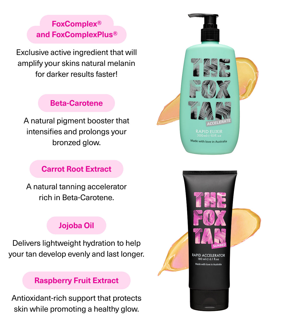 Ingredients - Aloe Barbadensis (Aloe Vera) Leaf Extract, Aqua (Purified Water), Prunus Amygdalus Dulcis (Sweet Almond) Oil, Cetearyl Alcohol, Glycerin, Caprylic/Capric Triglyceride, Dimethicone, Ceteareth-20, Butylene Glycol, FoxComplex® (Acetyl Tyrosine, Hydrolysed Vegetable Protein, Adenosine Triphosphate, Riboflavin), FoxComplexPlus™ (Isochrysis Galbana (Algae) Extract), Beta Carotene, Daucus Carota (Carrot) Root Extract, Rubus Idaeus Raspberry Fruit Extract, Olea Europaea (Olive) Fruit Oil, Camellia Oleifera (Camellia) Seed Oil, Argania Spinosa (Argan) Kernel Oil, Helianthus Annuus (Sunflower) Seed Oil, Simmondsia Chinensis (Jojoba) Seed Oil (Organic), Rosmarinus Officinalis (Rosemary) Extract, Glycine Soja (Soyabean) Oil, Panthenol, Xanthan Gum, Allantoin, Tocopherol, Parfum, Sodium Dehydroacetate, Citric Acid, Benzyl Alcohol, Phenoxyethanol, Benzyl Benzoate, Geraniol, Linalool, Methyl Ionone